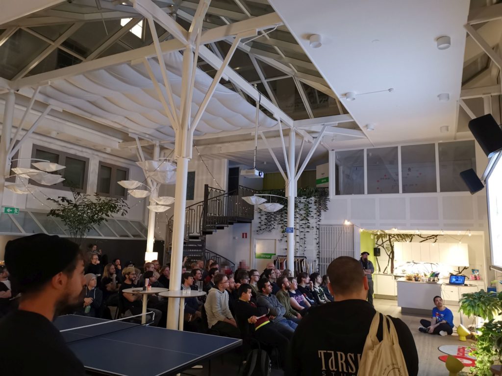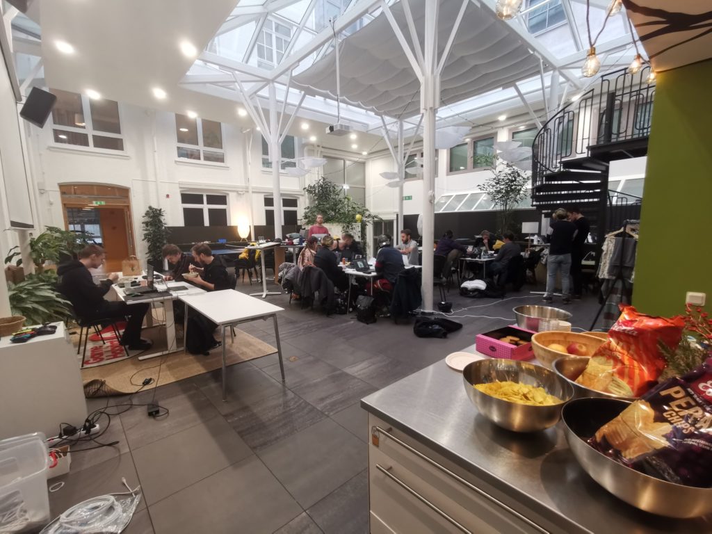 We got the Hello video shot on Saturday, right before pizza. Since we have it at the same venue, a similar shot was used where we went up the stairs and shot below. We got coordinated with a “hej från Malmö Sverige”, a clap and a cheer by a countdown of my fingers. And this time we made sure the shot wasn’t cut too early as in previous years. Also new was the #media channel for our volunteers to upload photos to, which worked out pretty nicely as it was the jam team and the volunteers that were tasked with taking photos.