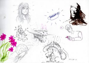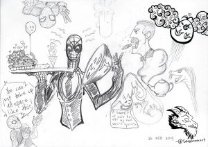 Just about every time we host sketch jam ever since we introduced it, we pass around a collaborative sketch which anyone can contribute to. It creates a collective piece which reflects the interesting and diverse participants that we have.